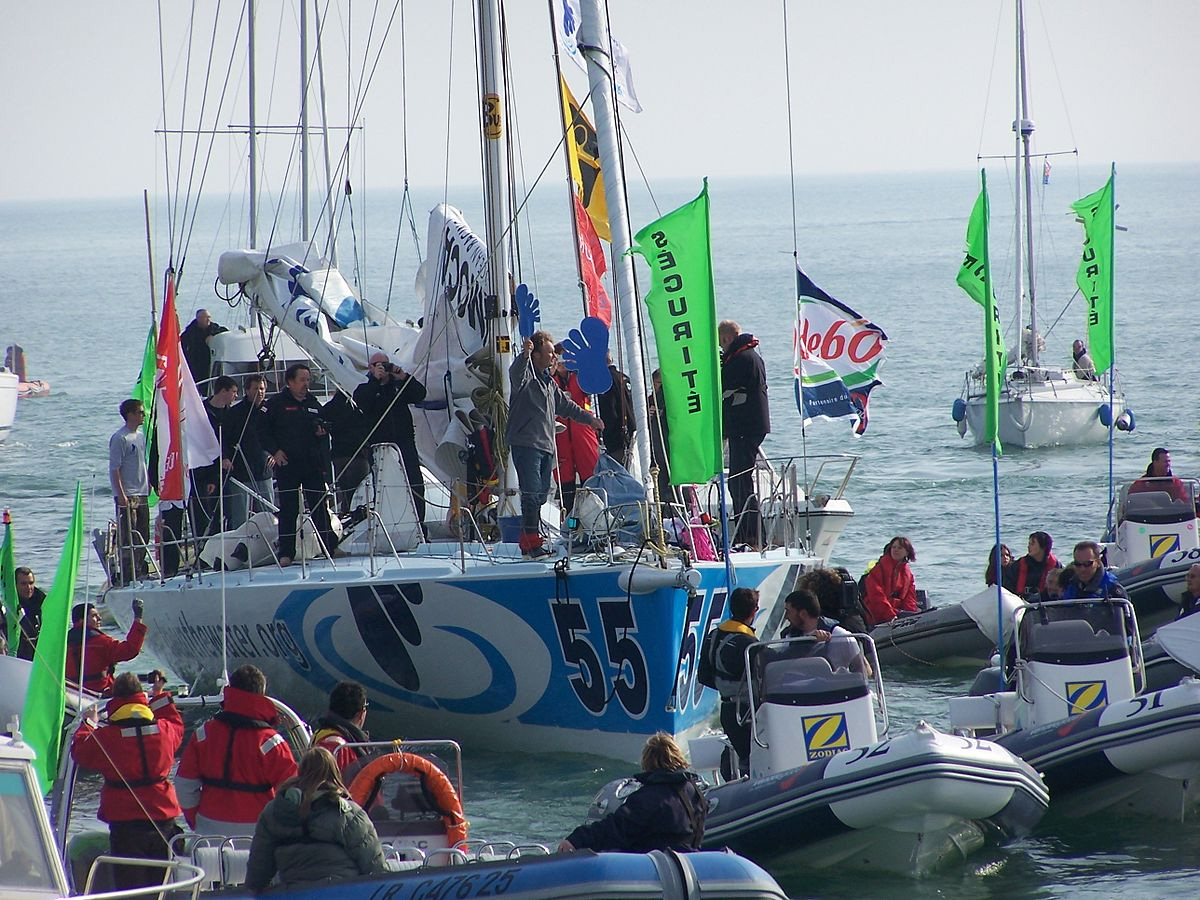 _ | _ Steve escorted back to the Les Sables d'Orlonne canal by the race security authorities. _ | _