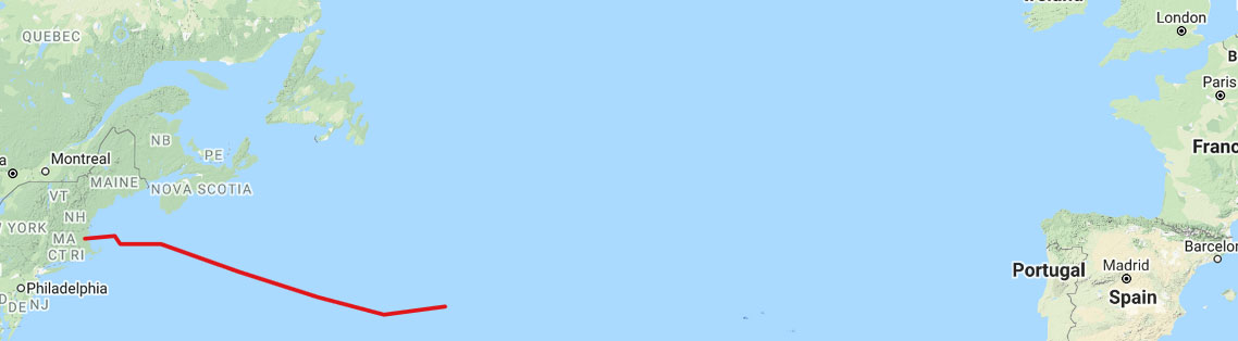 Whilst it blew we lay in our respective bunks like a pair of book ends, both of us thinking "surely this can't go on for much longer", but that's the joy of going with the weather systems, they take forever to come over you. Neither of us said very much, it was fairly noisy. I thought perhaps we should have had a game of shouted "I-spy" to break the silence between us, when Sam announced he could see some blue sky through his bedroom window, and within a couple of hours there had been a big wind shift of around 90 degrees, the wind had dropped to 30 knots, and we unrolled the solent, shook out the third reef and started for home in earnest, with our boat speed over 20 knots hour after hour. We fortified ourselves with the biggest vat of tortellini in the world, swimming in olive oil with grated cheese on the top and a yoghurt to finish! At one time later during the night the computer said that our time to go was 95 hours to the Scilly Isles, we were really hammering on! It didn't last - today we are upwind again, against an eddy of the Gulf Stream, again, with the wind going up and down annoyingly in the range between full main and one reef - shades of the race over!