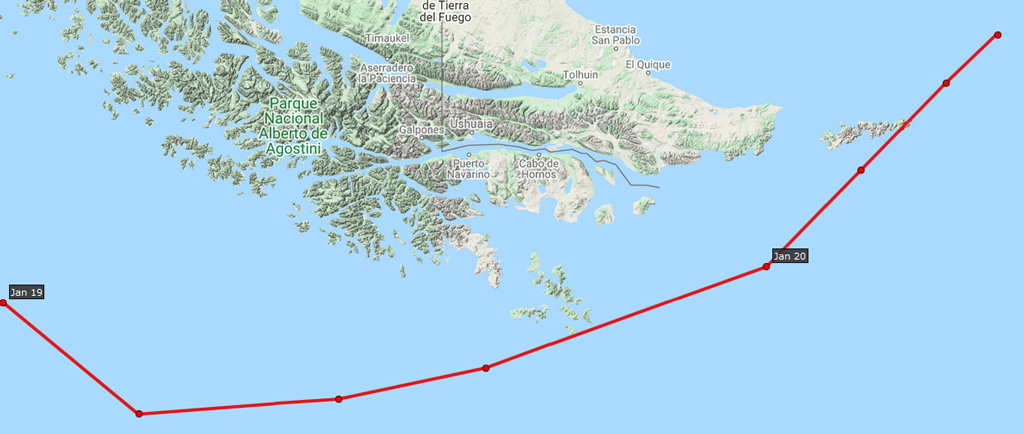 I am sitting here "clock watching", or watching the time to the waypoint on the electronic chart to be more accurate - not something I ever do when at sea except for when I'm doing corporate sailing days and your timing has to be perfect. Ninety four miles to the Horn.